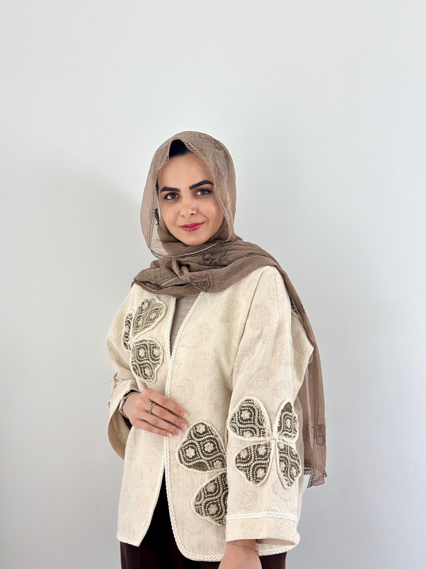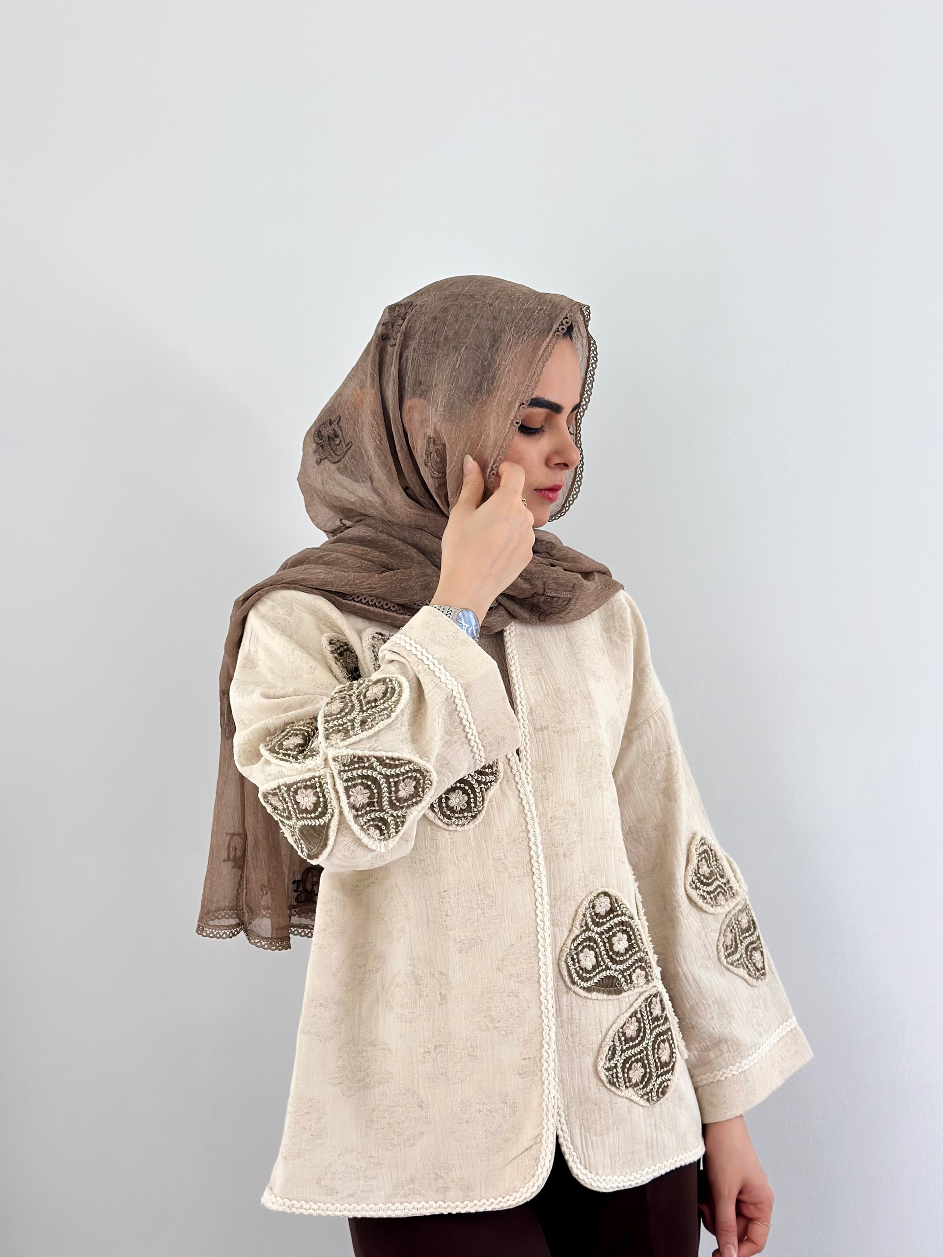 رنگبندی: زمینه تمامی کت ها کرم میباشد با خرجکار از جنس مخمل در رنگهای سبز،موکا،سرمه ای