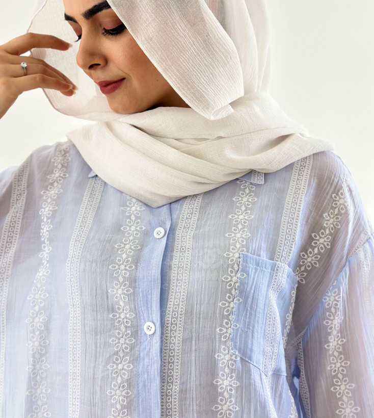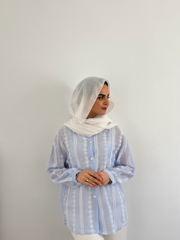 تاپ سفید بندی نخ پنبه همراه شومیز میباشد