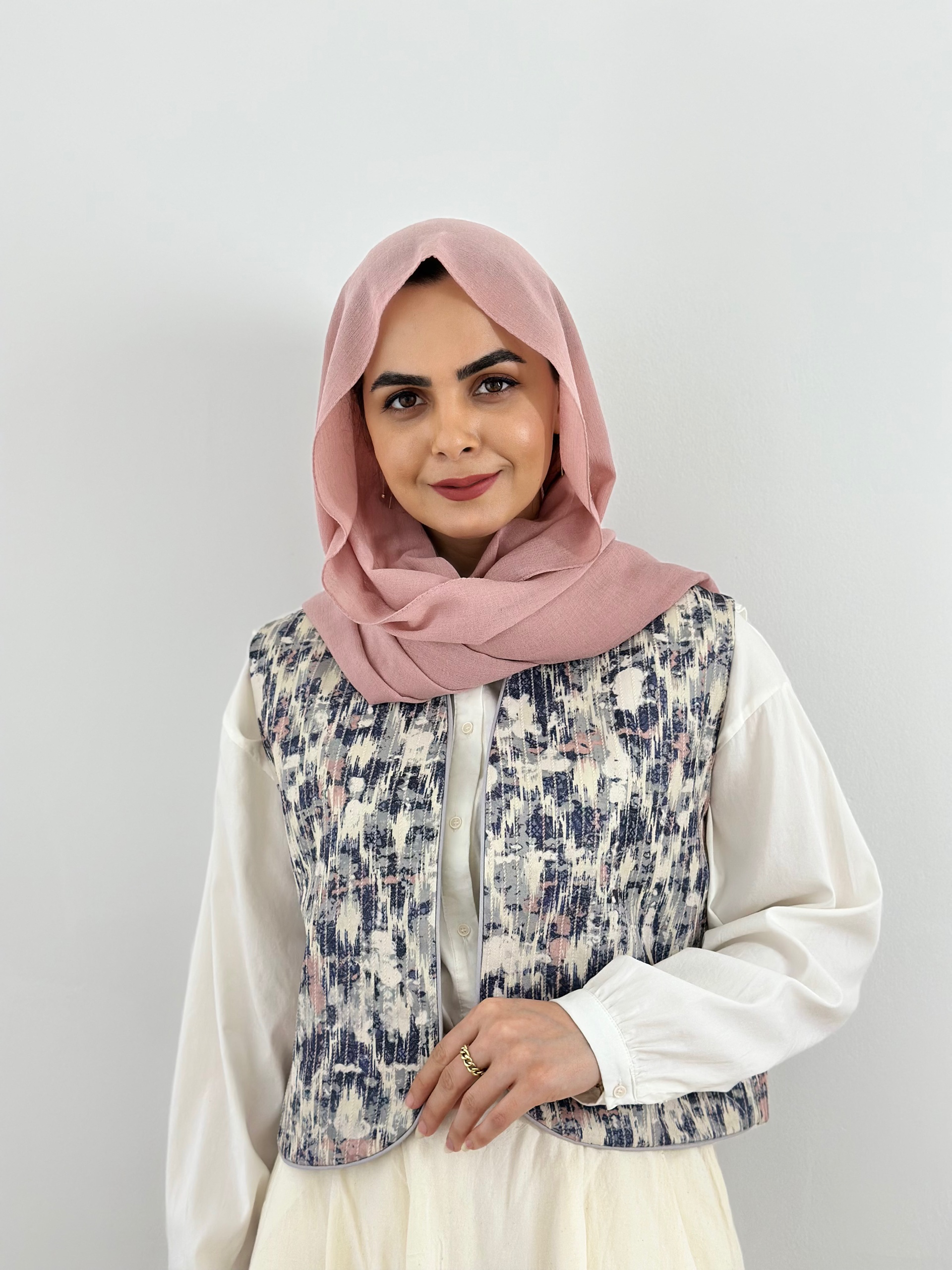 وست کوک دوزی قسمت جلو و پشت کار پارچه کوک دوزی کار شده لبه ها مغزی دوزی شده کل کار لایی کشی شده قد کار 50 تا 55 فری سایز, مناسب تا 44