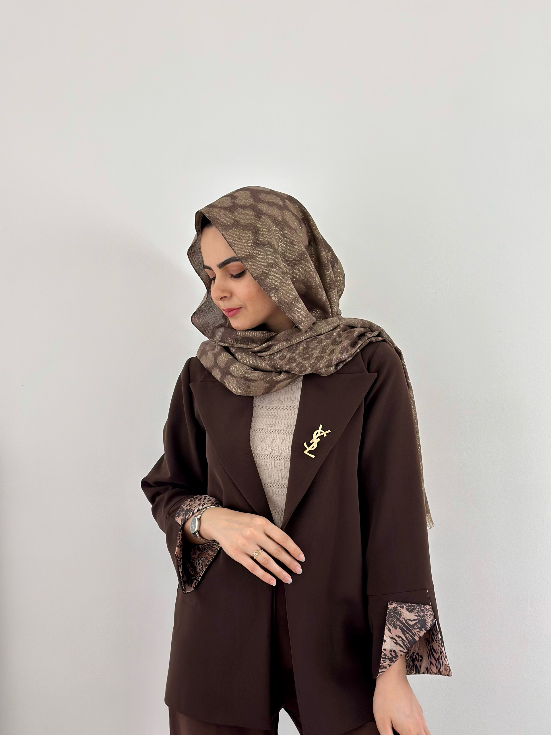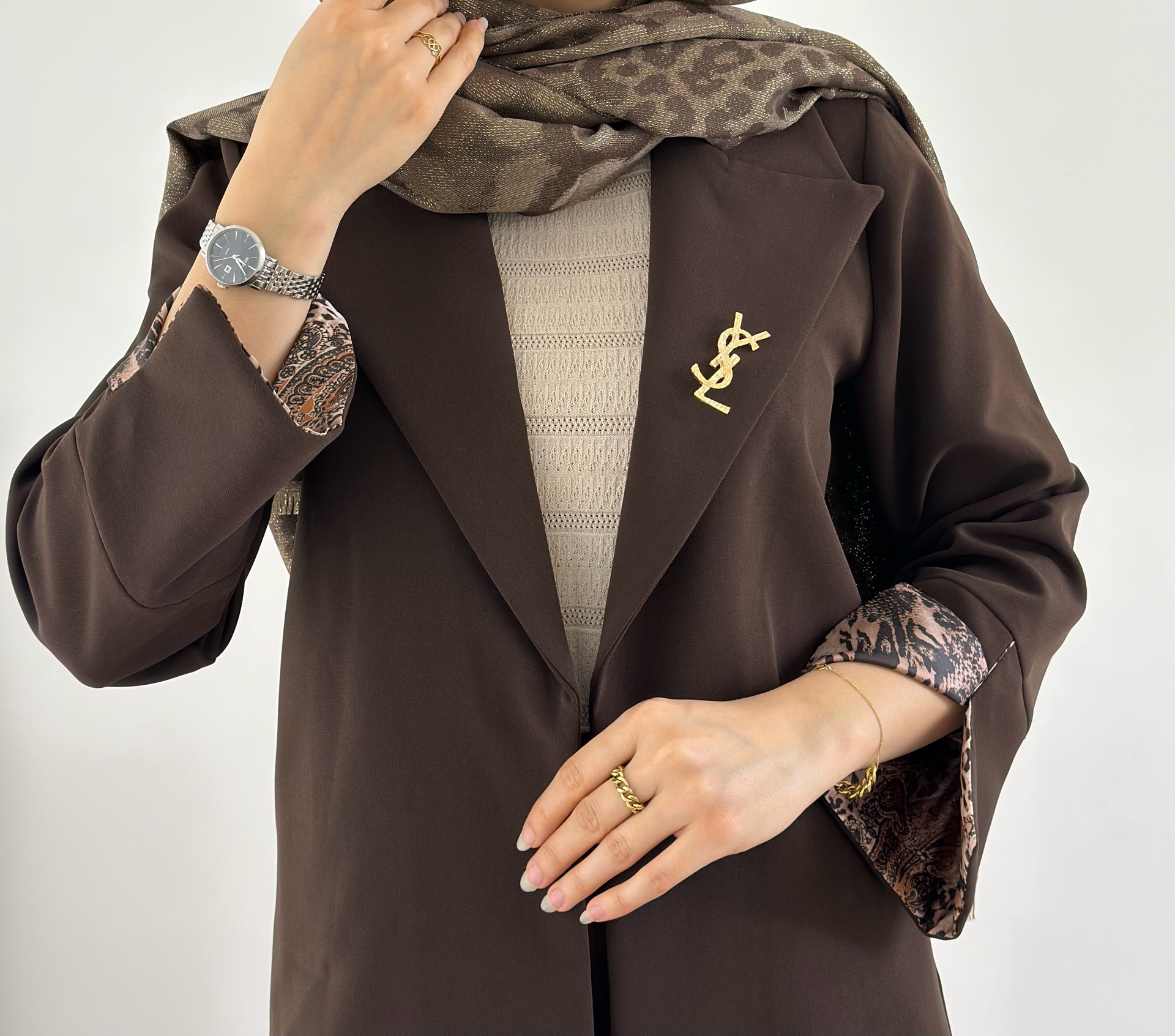 روی یقه گل سینه ysl سنجاق شده که قابل گرفتن میباشد